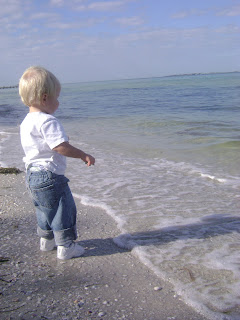 Merry Christmas to everyone. We enjoyed Riley's second Christmas on Anna Maria Island. Christmas Eve Granny Bird made a wonderful supper and then we walked along the beach and took some family pictures. Christmas morning we ate at the Beach cafe and Santa came to the beach. Riley's new word is "Uh-ohs!" He says it after he throws his food off his plate, his bath toys out of the bath, or if he is really scared. Riley's second encounter with Santa was the same result as the first one. He wants nothing to do with Santa! He kicks, screams, scratches to get away from him! Oh well:( Riley seemed to love his santa presents. We capped off the Holidays last night by eating at the Chart House overlooking the Gulf of Mexico. We are all thankful to be well and happy and together this holiday season.